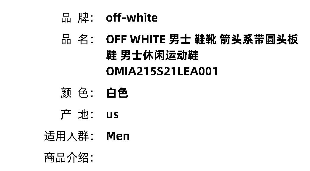 OFF WHITE 男士 鞋靴 箭头系带... 当商品进行补货时,我们将以短信、邮件的形式通知您,最多发送一次,不会对您造成干扰。 |